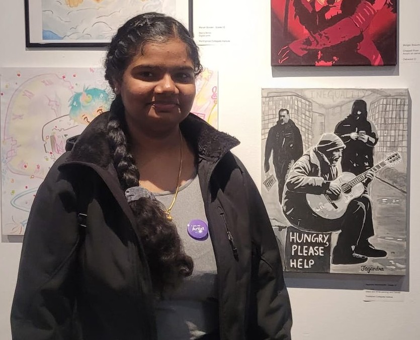 Me standing proudly beside my artwork at the Youth in Art – Edge Exhibition.
