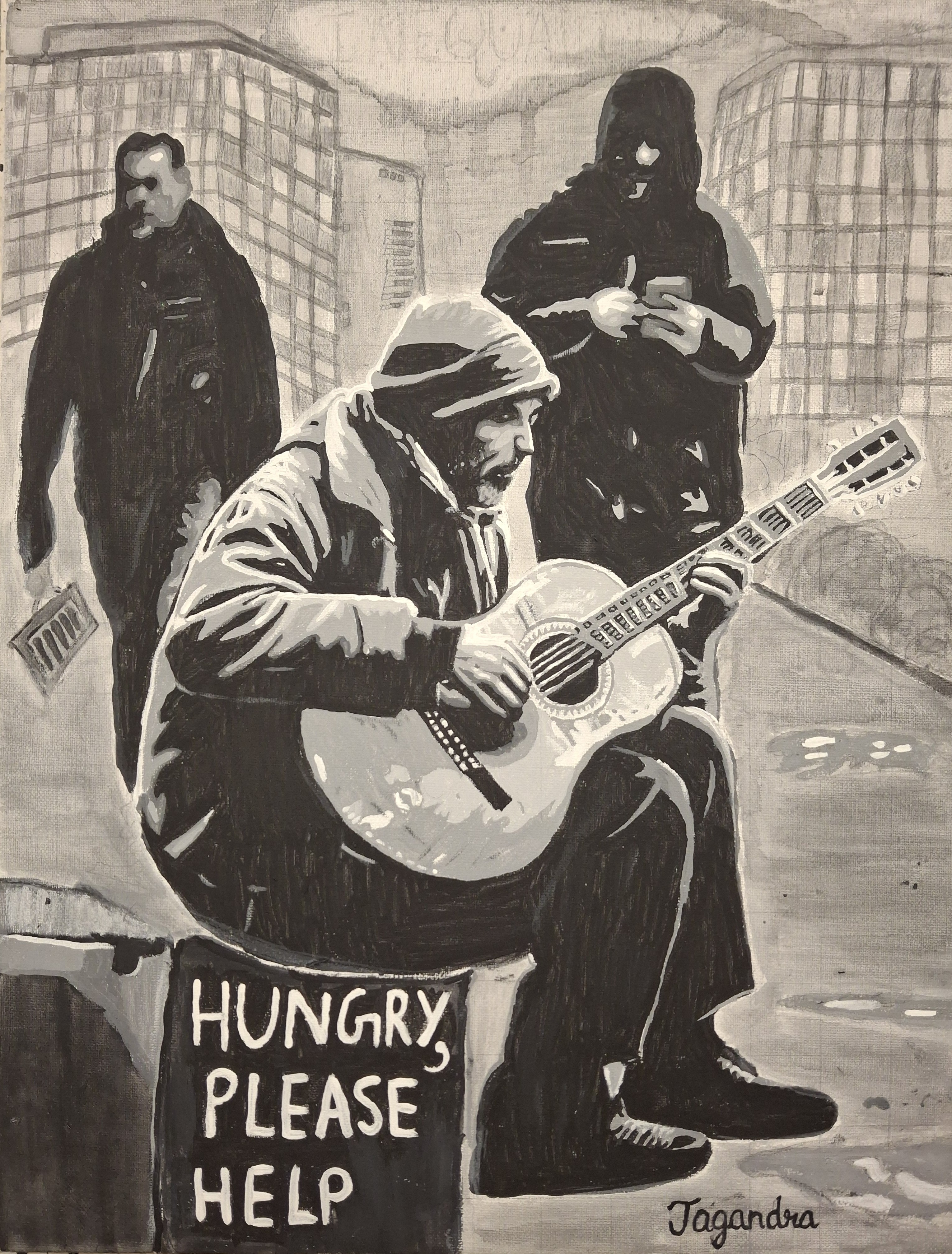 This project features my black‑and‑white artwork exploring themes of social inequality.
