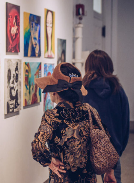 Visitors observing my artwork during the exhibition — a proud moment.